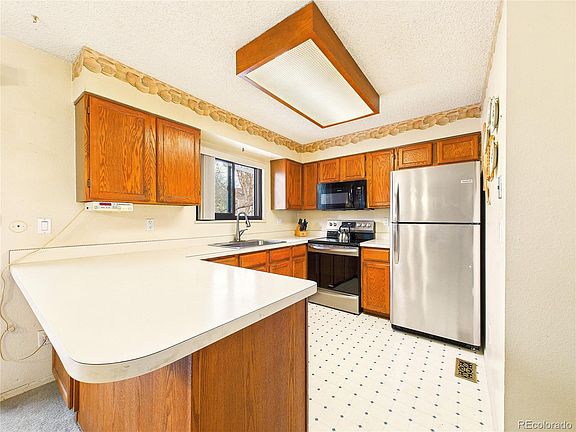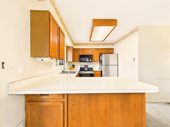 Step inside and be greeted by an open, airy floorplan filled with natural light. The cozy living room features a fireplace for those chilly Colorado evenings and direct access to a brand-new deck, perfect for relaxing or entertaining. The kitchen offers laminate countertops, newer appliances, and easy flow to the dining and living areas. A convenient powder room on the main level is ideal for guests.