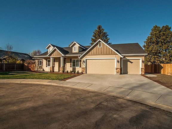 Beautiful custom built 3 bedroom, 2 bathroom home with 10 foot ceilings, on a large .24 acre lot. Home is located at the end of a quiet cul-de-sac. This home includes a front office with double doors, a large second floor bonus room, and a huge 4 car garage with custom epoxy floors. Front of the home has a large covered front porch, and the back of the home has a large covered private patio with huge neighboring trees. The open floor plan is designed for entertaining with the kitchen, dining, and living room all open to each other. Numerous upgrades are included with this home. The upgrades include, tile and engineered hardwood flooring. Large kitchen island with breakfast bar. Stainless steel appliances. Solid granite counters with tile backsplash. Custom tile in all tub and shower areas. Natural gas fireplace with custom mantle, and tile surround. Direct patio access from master bedroom. Huge master walk-in closet with custom shelving package, and window for natural light. Oversized laundary room with custom shoe removal bench/coat hook area, numerous cabinets, and granite counters. Landscaping includes trees, shrubs, sprinklers, concrete curbing, and cedar fencing. Includes large RV parking area, and irrigation water reported to be available. Located in the desirable Boise School District. No Home Owners Association fees. If you have any questions, feel free to call Mark Cantrell at 208-869-7141. Thank you.