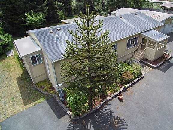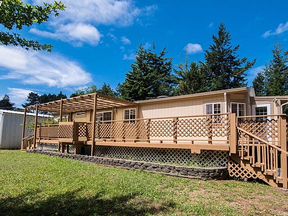 Peaceful, Country Home on 1.8 acres, with seasonal creek & waterfall, plus oversized 3-car garage & shop! Just minutes from the Pacific Ocean & coastal shopping. Well-maintained 3 bed/2 bathroom manufactured home, refrig & microwave included. Separate laundry & utility rooms, dining area, enclosed front porch, full RV hookups. Enjoy BBQs & gatherings on the new exterior deck! Garden pond & mature landscaping along the paved driveway.