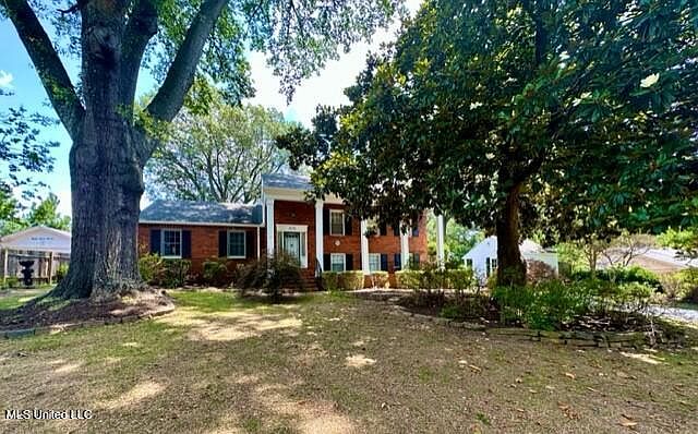 Come see this stately tri-level Colonial home surrounded by beautiful landscaping that includes a magnolia tree. As you enter from the front door the entrance is adorned with a chandelier, white and black checked floors, and a view of the den to your left, kitchen straight ahead, and stairs to go up or down to the right. The den has original hardwood floors and a marble fireplace(nonworking),and custom drapes, the dining room has wood floors and lovely molding, the kitchen has granite countertops, a center island with plenty of cooking space, tile backsplash, and undermount lighting, refrigerator and washer and dryer stay(as-is), off the kitchen is a huge morning room with tons of windows and a skylight, down a few steps you will find a large bedroom,full renovated bathroom, a living room with builtin bookcases and a fireplace, up a few steps from the entrance you will find 2 large bedrooms and 2 full bathrooms(new carpet in both bedrooms), go a few more steps up and you will find another bedroom. Once outside there is a nice porch on the front of the home,2 large detached storage buildings, 1 attached storage room, 2 car carport, and extra parking. This one is definitely a show stopper.