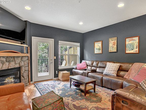 Just in time for Summer! This Resort Chalet is centrally located to Government Camp shops, restaurants & hiking trails and ski slopes. Rare unit backs to Collins Lake and views of the creek for a private and quiet stay. Current owners have not rented this unit but this would make a great Airbnb rental, historical rental revenue available for similar units. Let this be your gateway to Mt. Hood and all the outdoor activities it provides. Sold furnished and ready for your guests or a vacation rental. Mountain modern kitchen with open shelving, gas range & rustic hardwood floors throughout. Two bedrooms with a sleeping loft that is a nonconforming bedroom. Plenty of room for guests with 2 king beds and a custom built triple full size bunk bed. Short walk to clubhouse, pool, hot tub and sauna. Skip the ski traffic and be the first on the Mountain.