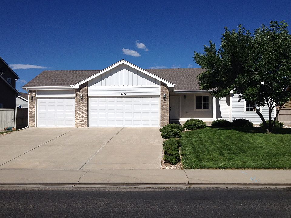 8779 Flaming Arrow Ave is a house in Wellington, CO 80549. This 1320 square foot house sits on a 7,500 square foot lot and features 3 bedrooms and 2 bathrooms. Brand new interior paint. Brand new carpet.Ranch style with three car garage Nearby schools include Eyestone Elementary School and Wellington Junior High School. The closest grocery stores are Ridley's Family Markets and Bella's Market. Nearby coffee shops include The Country Rose and Owl Canyon Coffee. Nearby restaurants include Wellington Grill, Chocolate Rose and Pizza Palace.
