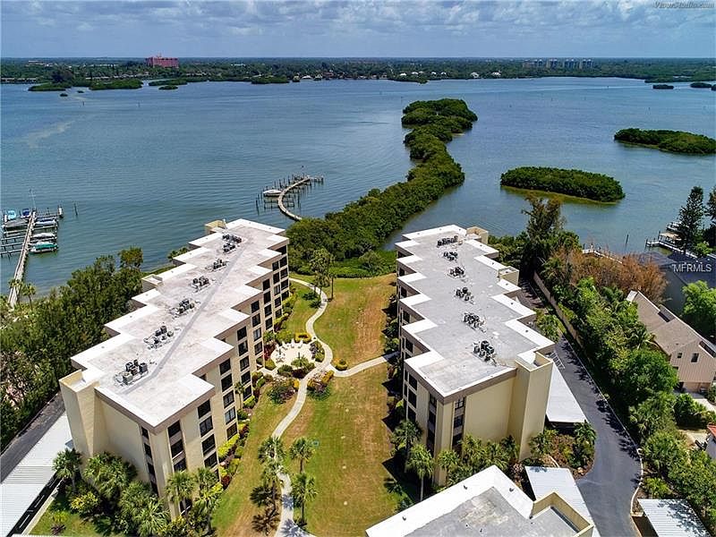 Wait no longer, your dream of living on Siesta Key can now be a reality! Beautiful 2 bedroom, 2 bathroom condo with a view of the bay and gorgeous mangroves is the perfect place to call home. Updated kitchen appliances, bathrooms, wood floors, washer/dryer and plantation shutters are only a few features that make this home move in ready. Furniture is available under a separate contract. The open floor plan provides optimal living space, split floor plan so guests can be comfortable and a lanai to take in the scenery. Enjoy breathtaking sunsets and relaxing walks on the beach. Endless amenities in this active community include 2 heated pools, boat dock, beach access, fitness room, tennis courts, game room, shuffleboard, billiards, kayak launch and more. Schedule your showing today!