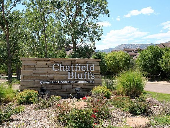 Fabulous Two Bedroom, Two Bath condo in the highly coveted area of Chatfield Bluffs. This condo offers you spacious rooms plus a detached one car garage. You will love the Kitchen with an abundance of Cabinets, Stainless Appliances and plenty of room to prepare your meals or bake your cookies. Separate Dining Room makes entertaining a delight. Master en suite with dual closets plus a five piece master bath which includes a free standing shower. Enjoy your covered private patio just off of the living room with an extra storage closet. Garage is just in front of the building. Also featured is a separate Washer/Dryer Closet, Ceiling fans, Central Air Conditioning and a Fireplace with Hologram Flames. Amenities includes Basic Cable, Pool, Two Story Clubhouse with Fitness Room, Snow Removal, Water, Sewer and exterior maintenance. Close to Mountains, C-470, Shopping and Restaurants, Chatfield State Park,Trails in Deer Creek Canyon, Roxborough Park, Waterton Canyon and Botanic Gardens.