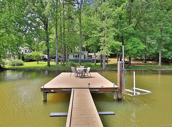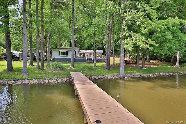 Large waterfront lot in a cove! Cute 2 bed / 2 bath home nestled on a quiet wooded lot with 215 ft of beautiful waterfront views. Home is being sold AS-IS and fully furnished. Paved drive with (2) 20x20 car carports, storage shed and a full service RV parking pad (water, sewer, power). Home has natural gas heat, stove and dryer. Electric water heater. Updated electric in 2015. Pier was updated/extended in 2013 (swim / floating dock, stationary dock and manual personal watercraft lift). Large deck on back of home (30x26) great for entertaining, grilling or just enjoying the view.