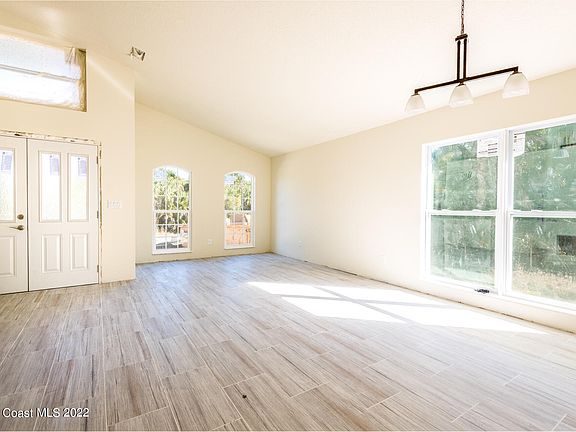 Beautiful Brand New construction! Not in an HOA! This new home features 4 bedrooms, 2 bathrooms, 2 car garage, along with a beautiful foyer upon entering. The vaulted ceilings throughout this spacious 1921 sqft home makes for an even more open feel. With tile throughout, it also features an island in the kitchen along with beautiful white quartz countertops and complementing grey cabinets. Enjoy the peace and quiet while still being close to major shops, stores, schools, and amenities! City of Palm Bay currently working on paving project, and road will be paved in the coming years. Don't miss out and make this dream home yours today!