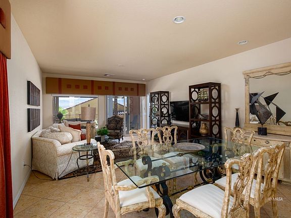 2 bedrooms with a den/office. Open Concept Floor Plan with tile flooring, laid out on a diagonal pattern, throughout the living area and Den. Plenty of windows provide lots of natural light. The great room is large, and the dining area is big enough for a large table with 6 seats and a credenza. Roomy kitchen with granite counter tops, upgraded cabinets with pull out drawers, stainless steel appliances and a breakfast nook area. Appliances are included. Extra Pantry Cabinet with 2 pullout shelves for easy access to small appliances. Cabinets in the Laundry area match the kitchen cabinets. Washer and dryer are included.The master bedroom is a really good size and is in the opposite side of the home and includes upgraded carpet and pad. The bay window provides a nice sitting area where you can read or just look at the mountains. On suite Master Bath has dual marbled vanity, walk in shower and large L-shaped closet. The master shower was recently upgraded with tile throughout and glass door. The Den is set up for 2 offices or an office and an entertainment center with a Smart TV which is also included. There is plenty of room for a Murphy bed or sleeper sofa. Screened in Patio Opens.