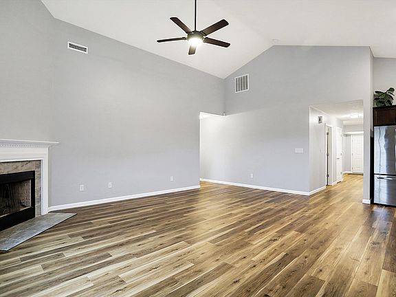Welcome to this charming Craftsman-style home on Cherry Tree Lane! Featuring three spacious bedrooms and two full baths, this beautifully designed property boasts high vaulted ceilings and luxury vinyl plank hardwood flooring throughout, offering both elegance and durability. The open-concept layout creates an inviting flow, perfect for modern living. Step outside to your cozy backyard, complete with a brand-new gazebo, where you can relax while enjoying serene views of the quiet neighborhood pond. This home seamlessly blends comfort and style in a peaceful setting, making it a must-see!