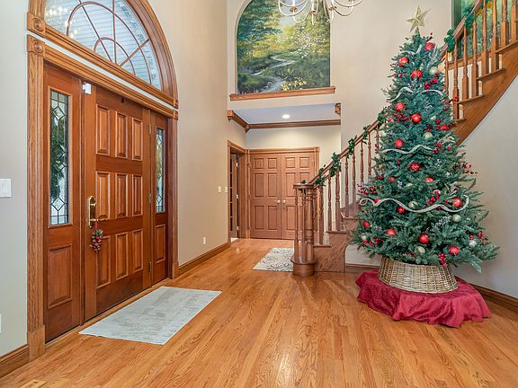 Spectacular executive style 5 story home that is peacefully set on 8.74 beautiful private wooded acres. Nestled in the middle of this amazing tract of land is this 26-room home that features 8 bedrooms, 10 full baths, 3 kitchens, 4 fireplaces and a home office too! Ideal for related living, extended family and an amazing home for entertaining! With over 12,000 sq ft of finished living space, this home also features a bathroom in every bedroom plus a few extra for guests, a massive gym/indoor hot tub/sauna area, game room, numerous family/gathering rooms, a kitchen on the main level, lower level and basement. Custom design on every level including an elevator that will take you from the basement to the bedroom level! 3 laundry rooms for added convenience! Custom ceilings thru out include 18' in the great room, wood cathedral in the living room, vaulted in the office, tray in the dining room and main bedroom! Two 4-1/2' wide staircases to the upper floors. Quality abounds at every turn! Breathtaking panoramic views of this majestic retreat. Many of the additional features of this well thought out home include 6 zoned HVAC systems, crown molding, oversized trim, hardwood flooring, massive closet space. The 'Great Outdoors' features a 2-level oversized deck accessible from the living room, main bedroom and the lower level. The 2 level gazebo has the upper level screened in with tv hook up and wood burning fireplace. Both levels have electric! Indoor hot tub and sauna in basement stay. The winding concrete drive leads you to a circular drive and a side load 3 car garage. This home truly has so many amazing features, you must see it to appreciate all it has to offer.