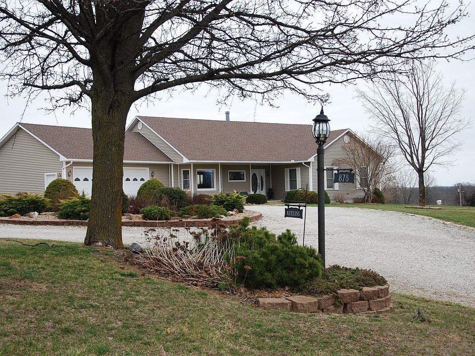 SPACIOUS MODERN COUNTRY LIVING Near Both Town and City! Built in 1995. Total 4,480 sq.ft. (3,235 finished) plus Attached Garage (24x30), Screened Porch (16x18), and System of Porch + 2 Concrete Patios + Wood Deck all connected by Stone Stairway. 4.015 Acres. UPPER FLOOR: (2,240 sq.ft.) 9 ft. ceilings, Thermopane Windows, Berber Carpet with Tile Entryways and Kitchen. GREAT ROOM includes Foyer, Banistered Double Stair Well, Formal Dining Area, Gas Fireplace with Large, Antique, Tiger Oak Mantle, Ceiling Fan, Floor to Ceiling Rear Windows and French Doors onto Screened Porch. KITCHEN with Breakfast Bar, Double Oven, Built-in Exhaust/Microwave, Large Pantry plus Closet. MASTER SUITE (19x14) overlooks acreage and opens to Hall, Screened Porch, and Large MASTER BATH (14x11) with 2 Vanities, Walk-in Shower, Jetted Tub and Walk-in Closet; opens to Laundry Room with Second Walk-in Closet; opens to Hall with Attic Fan. 2 BEDROOMS with Ceiling Fans and large closets served by second FULL BATHROOM. Also 1/2 BATH off Mud Room, connecting Garage and Kitchen. 11 Closets including 2 walk-ins. LOWER FLOOR: (2,240 sq ft with 995 finished) FAMILY ROOM (17.4x 33) with windows and door onto covered concrete patio overlooking acreage. MULTI-PURPOSE ROOM - Bedroom/Study/ Exercise/Rec. (17.4x19) windows overlooking acreage. Plus 4 Unfinished Rooms. ADDITIONAL FEATURES: Full Governor's Driveway with 6/8 car parking, Shrub Garden in center, and Yard Light; Scenic Views from both Front and Rear; New high efficiency Heat Pump Furnace/Air Conditioner with gas furnace back-up (2010); New Roof (2014); Septic Tank System.