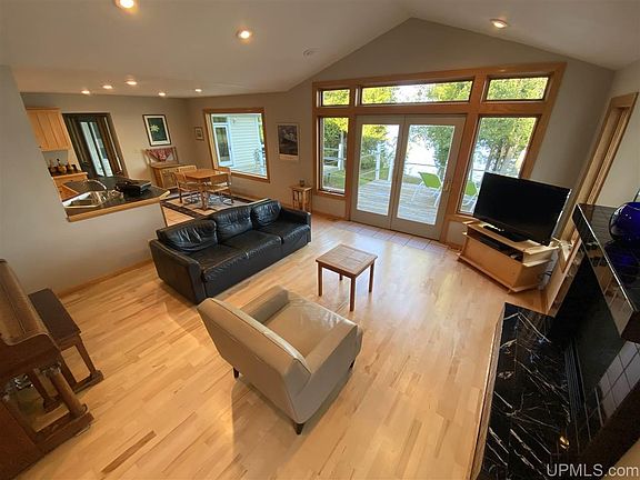 Life is better on the lake. Consider this executive custom built 3 bedroom home privately nestled on Lake Michigan 15 minutes south of Escanaba. Year round living with amazing views of Washington Island to Stonington on 100 feet of shoreline. The foyer opens onto the formal dining and living rooms. A roomy eat-in kitchen is perfect for entertaining and near a vaulted living room and cozy library. The master wing features a sitting room with vaulted ceiling, and a striking two story gas fireplace flanking a wall of windows facing the water. The master bath boasts its own laundry, his and hers sinks, Jacuzzi tub, and custom designed walk in-closet. That's not all. Spacious tiled walk-in shower and sauna! Tucked in above the sauna is a unique cubby--perhaps a reading nook. This home has much to offer anyone who values a well-designed, well-built private home on one of our Great Lakes!