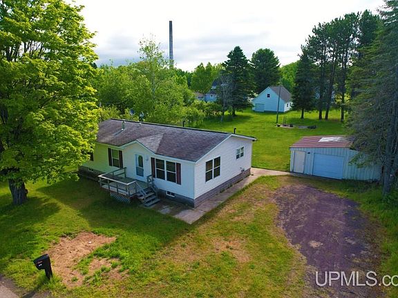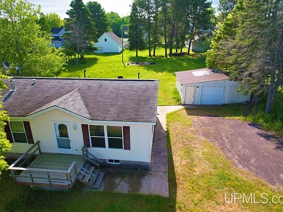 This affordable ranch home or investment property in the quaint town of Gay, Michigan in the Keweenaw Peninsula has a view of Lake Superior from the back yard. The 2005 Schult manufactured home is a 3 bedroom 2 bath with a nice open concept space. The living room is large and the kitchen is spacious with plenty of counter space and cabinets. The hall has a wall of cabinets for more storage. There is a master suite with a walk in closet and separate bath. The other 2 bedrooms are on the front of the house and both have closets with a full bath nearby. The laundry has its own room and this opens to the backyard. There are decks on both front and back of the house. The backyard is good sized for your outdoor activities. This property backs up to the drive able alley which is maintained by Gay. The 500-gallon propane tank is owned so you can negotiate good fill up rates. There is an oversized one car detached garage with plenty of storage space. The driveway is large and can accommodate 6-8 cars. This is a great community with a lake front park 1 mile and 8 miles away. There is walking access to the beach along the trail through the field out of this backyard. Snowmobile trails lead in and out of Gay. Lake Superior is just a stones throw away and so is the locally renowned Gay Bar. Come make this one your Copper Country recreation headquarters. Recent repairs: main shut off value, furnace serviced with new needed parts June 2024.