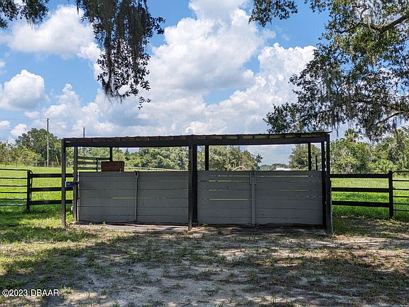 Hobby farm located on 9 beautiful high & dry rolling acres. Several fenced pastures, a 2-stall shelter for horses, 1/4-mile riding track, 2 sunrooms, one in the front of the home with a pet door and direct access to fenced yard, the other set up as additional sleeping quarters & sitting room at the rear of the home with direct access to the backyard. Large 2 stall garage. Quiet neighborhood with easy access to SR 17, SR 40 and only 10 minutes to Deland and less than an hour to Ocala/World Equestrian Center.
