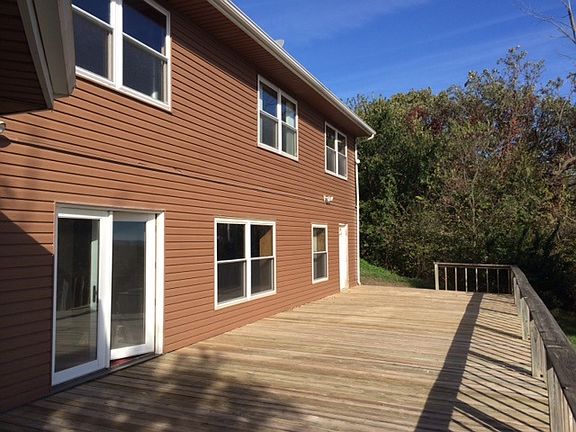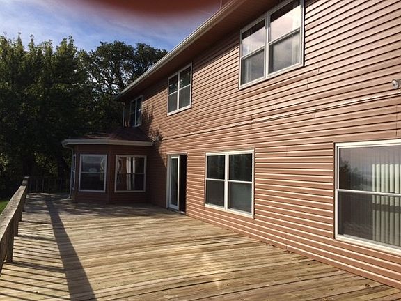 Lots of room here in this 4 + bedroom ranch and what a view!! All the bedrooms are on main floor, large and open entry steps to fully finished basement with an open plan - Large updated kitchen with eat in with a view of the river valley, family room, large bath with walk in whirlpool tub and another half bath. What a deck @ 70 X 15 over looking the river valley. Great outbuilding for garage or shop use. Seller is finishing a newly built lagoon system for the home. You need to see this !!