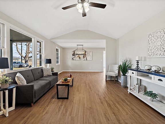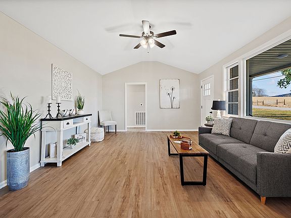 BACK ON THE MARKET!! Almost 2 (Level) Acres & NO HOA! One Level, Open Concept Floor Plan with Dining & Entertaining Spaces Galore! Beautifully Renovated, New "Almost" Everything! New Roof 2023, New HVAC 2022, All New SS Whirlpool Appliances (Including a Frig), New Cabinets, Tile Backsplash & Gorgeous, Upgraded Granite! All New Lighting, Plumbing Fixtures & Delta Faucets, Plus New LVP Flooring, Upgraded Carpet w/ 8lb Pad, Ceramic Tile & Fresh Paint Throughout. You'll Love the Large Sunroom that Leads the Perfect Portico for Relaxing, Grilling & Outdoor Entertaining. You'll Especially Enjoy the Views from the Covered Front Porch, of the Beautiful Cattle Farm Directly Across the Street. This Charming, Brick, Ranch Farmhouse is in a Rural Setting, but Oh-So-Close to Town! Get Away from All the Stress, & Soak in the Gentle Sights & Sounds of Nature. There's a Massive 2 Car Detached Garage & a Separate Storage Building for All Your Tools & Projects. Home is being sold As-Is.