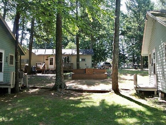 Main house has 2 bedrooms, 1 full bath with tub and shower, eat in kitchen, large living room with fireplace, attached heated 1 car garage, maintenance free attached deck, gas heat and a large workshop. Workshop could be converted to living space. Property has 100' level frontage on the Three Lakes Chain of 28 lakes, a 30' permanent pier, two 2 bedroom 1 bath seasonal rental cabins use propane for heat, maintenance free shed, a wood storage bench. All exteriors were painted in 2015. Main house has a skylight in the hall and a new roof in 2013. To see interiors of rentals either go to: http://www.photoshow.com/watch/SS6jT9Wz or our Facebook page: https://www.facebook.com/BayPinesCottages/