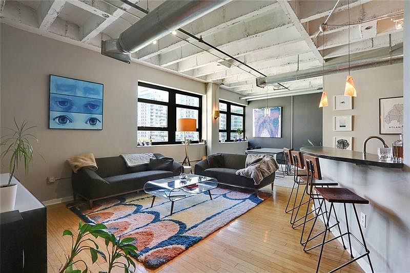 Extra-large top floor unit in a true loft building in the heart of Midtown. Includes an extra large parking space on the main level. Spectacular skyline views from the living area, dining area and kitchen. Smart NEST thermostat. Brand new GE refrigerator, Bosch dishwasher & Samsung built-in microwave & oven/stove. Concrete counters with a bar counter top. Brand new shower installed September 2024. Washer & dryer in unit (there is also a building laundry room as one of the many building amenities). High exposed concrete ceilings and wood floors. HUGE semi-private bedroom. Only one block from the Midtown Marta station, Publix, Whole Foods & Trader Joe's all within walking/biking distance. Walk to Piedmont Park and the Beltline. You really can't ask for a better location! 1 year lease minimum. $2,000 unfurnished and possibility to lease furnished. All electric (utilities to be paid by tenant). Dog friendly, no cats. No smoking.