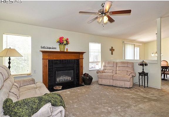 Lovely, gated 55+ community conventiently located just east of I-25. Open, sunny floorplan with 2 bedrooms, 2 baths plus office/den. Former model home finished garage, fully fenced yard and private hot tub. Community clubhouse with pool tables, dance floor, exercise area, library & computer room. Pitch N' Putt golf and common park areas.