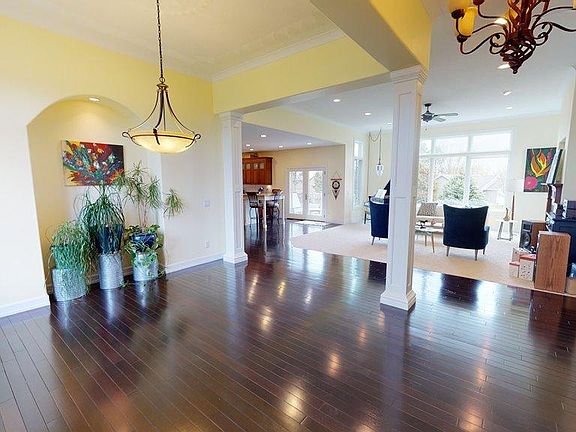 One of a kind, CUSTOM built Contemporary style home features 4 bedrooms, 4 bathrooms, and many unique amenities. A chef's dream with this 8' butcher block island with a prep sink, custom cabinets, hardwood floors, and top of the line appliances. The main level master suite features a tray ceiling w/fan, heated tile flooring, double sinks, tile walk-in shower, jetted tub with decorative tiles, separate toilet area and large walk-in closet. The second master suite in the lower level has an attached bathroom and walk-in closet. There is a gas fireplace, wet bar and door to the patio in the family room. Beautiful rose bushes, flowering shrubs and perennials landscape this home which is bright and full of sunlight. A pre-listing home inspection has been completed on this property.