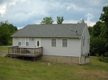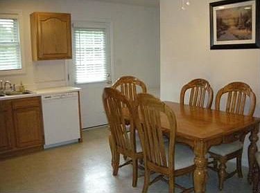 Larger than it looks on level .96 acres.Large eat in kitchen.Great cabinet space. Upgraded vanity in bathrm.appliances.Upgraded vanity and cabinet in bath. Whole house water conditioner. 13 course block in basement.