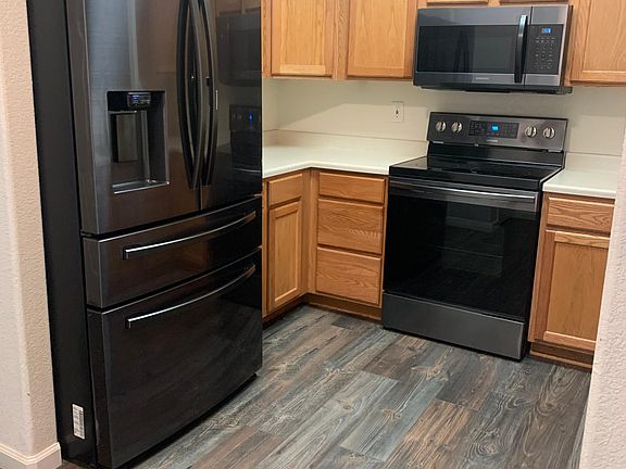 New hardwood on second floor, all new appliances, new fixtures throughout home. Both bedrooms have walk in closets, with three other closets throughout home. Den/ office space on second floor. Kitchen features walk in pantry. Very close to I-225, Aurora mall, lots of shopping centers and restaurants nearby. Owner pays for HOA. Renter responsible for all utilities. No smoking allowed. Pets welcome. Front door features a large dog door. 2 pet limit. Non refundable Pet deposit of $150 per pet. Attached two car garage. Off street parking available. Parking spots are reserved but are for other properties.