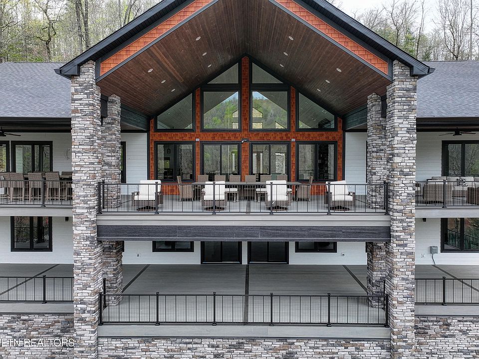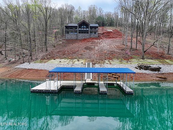 There is a stunning new home available for purchase on Norris Lake. This rare property is situated in the gated community of Shanghai Landing and boasts 234 feet of lake frontage on a deep-water cove. Although the construction is still in progress, the home will be ready just in time for the upcoming vacation and rental seasons. With 6 bedrooms, 5 full baths, and 3 half baths, there is ample space for guests. As you step inside this magnificent home, you will be greeted by high ceilings, a fireplace, and large windows overlooking the wooded property and lake. The main area comprises a great room, dining space, kitchen, and large kitchen island. You can also enjoy the serenity of the lake from the four-season room located just outside the kitchen, complete with a gas fireplace. Step outside on the full-length covered deck, the outdoor entertainment area. The upper-level features two master bedrooms, complete with full baths and walk-in closets. The fully finished basement includes an exercise room with a wet bar, a fully wired media room, an activity room for the kids, and a study for those who work from home. The downstairs also features four bedrooms and a bunk room, as well as a full-length deck to enjoy the stunning views of the lake. The property comes with an attached two-car garage, featuring metal ceilings and wall coverings, a storage area for lake toys, an ice maker, and a mechanical room for heating and air. The laundry room comes with two washers, two dryers, and a utility sink making cleaning an easy chore. The property also features a dock with two boat slips and a two-jet ski slot, with a concrete path leading down to the lake and the dock. This home has endless possibilities and is perfect for short-term rental or as a full-time residence. Some of the exciting features of this home include ten-foot ceilings, Trex decking, Anderson Windows, four sliding doors, a wet bar, an ice maker, granite counters, tile showers and tile floors in the bathrooms, mold-resistant sheetrock in the bathrooms, and plenty of storage space. The property is updated weekly, so stay tuned for more exciting features.