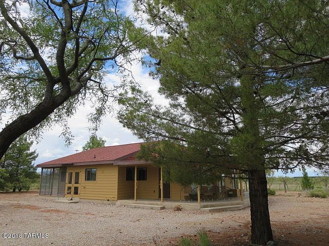 Solid energy efficient 3 bdrm 3 bathroom home w/open floor plan and covered porches on 3 sides situated off paved road on 20 acres. The property is located in a prime nut crop growing region of Cochise County. Gorgeous views all around of nearby Cochise Stronghold to the west and the Chiricahuas to the east. The entire property is powered by a Solar System that is 100% owned and tied into the Electric Co. which currently has a credit on the books. There is a detached 2 car garage/workshop w/attached efficiency apt. and laundry + 2 storage sheds. Soil & water have been lab tested w/positive results to grow wine grape &/or nut crops. All this plus many shade & pine trees surround the house & grounds creating your own private oasis. There is even a rock maze. State land to the north and west.