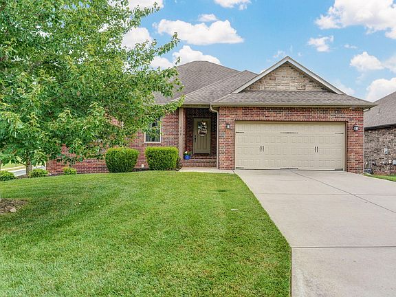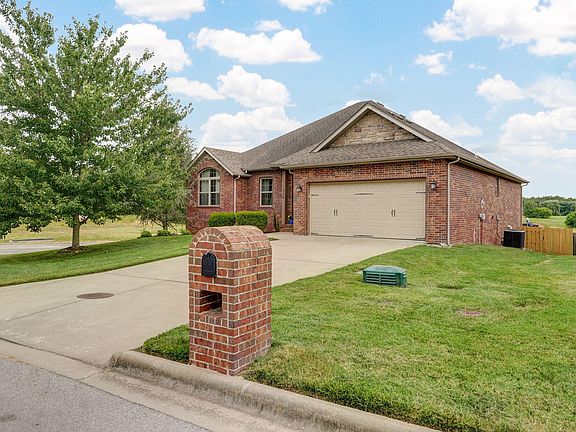 Beautiful all-bricl home in NIXA schools, with amazing views! From the moment you walk in the stylish entryway you will be delighted at the open concept design, fireplace and great floorplan. Light, bright and airy, with many custom touches. All of the south windows and the covered upper deck overlook 18 acres of open fields, (that cannot be developed.) On a corner lot for plenty of elbow room. Large master with double closets, 2 additional well placed bedrooms on the main floor and an additional guest suite and non-conforming 5th bedroom or office downstairs (no window). Downstairs also features a full wetbar and refrigerator, large open space for entertaining and family activities (pool table anyone?) and a fully finished John Deere or workshop space with heat and air. Fully concrete storm safety room as well. Security system stays!Tons of great storage! HUGE level backyard! Walk out onto a patio area in your privacy fenced backyard that opens onto land maintained by CIty of Nixa. SO much to love, come tour today!!