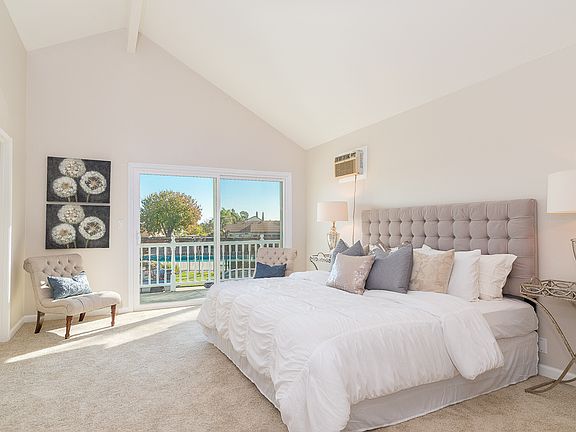 Enter this stunning two story home to be greeted by a spacious floor plan ideal for entertaining family and friends throughout featuring new rich wood laminate flooring and baseboards, new designer paint, and upgraded bathrooms! The living room's abundant natural light, fireplace, and high vaulted ceilings welcome you into the home and connect directly to the beautiful dining room perfect for formal gatherings. Just past the dining room lies the oversized great room including an extended bar seating area, custom kitchen cabinetry, and multiple upgraded windows providing ample bright light. The kitchen and great room lead to the relaxing and serene backyard featuring a covered patio area making both indoor and outdoor entertaining a breeze. Off of the dining room, stairs lead to the second level's sizable loft area perfect for your office, reading nook or kid's playroom. The entire second story also includes new upgraded carpet and each additional bedroom features new mirrored closet doors. The Master en suite is tranquil and peaceful including high beamed ceilings, a walk in closet and sliding door access to the luxurious front deck overlooking the community pool and local parks. There is a large 2 car garage offering additional storage areas and location is less than 2 miles to highly rated Ericson Elementary, Wangenheim Middle and Mira Mesa High Schools!