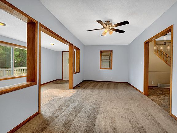 You will love this nicely updated 1.5 story home with 2 bedrooms, 1 bathroom, and an oversize 2+ car garage on a large 0.61 acre lot in Clear Lake. The main level offers an inviting entry with a tile floor, a spacious living room, an informal dining room with laminate flooring, a large kitchen with stainless steel appliances, and a new tile backsplash. A full bathroom and mud room with tile floors round out the main level. The upper level offers two nice size bedrooms with vaulted ceilings and a cozy flex area with walk in closet. Insulated and heated oversize 2+ car garage with built in shelving and cabinets for all your workshop needs along with an additional storage shed for all the lawn equipment. The exterior offers maintenance free vinyl siding, a large wraparound deck, and a huge covered patio. Move in ready with new carpeting and fresh paint. Conveniently located with easy access to I94 and HWY 10. Don’t miss out on this great home book your showing today!
