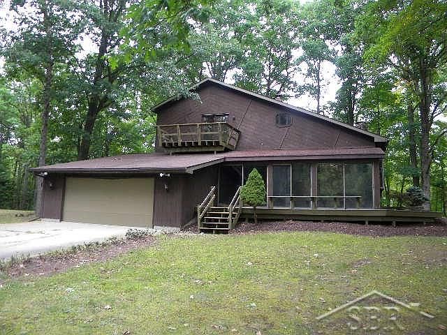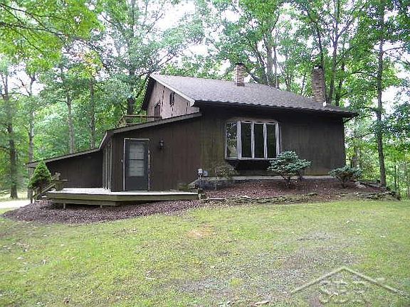 This custom built home sits on 20 wooded acres, with a large pond, and a horse barn too! The 2nd floor is all master suite and loft overlooking the 2 story tall living room. The main floor offers a kitchen with lots of storage, main bathroom, and 2 more bedrooms. The partially finished basement has a small 2nd kitchen, 3rd bathroom and an exercise room. Other features include a fireplace, 2 car attached garage, an enclosed front porch room, walk-out basement, and large front wood deck.
