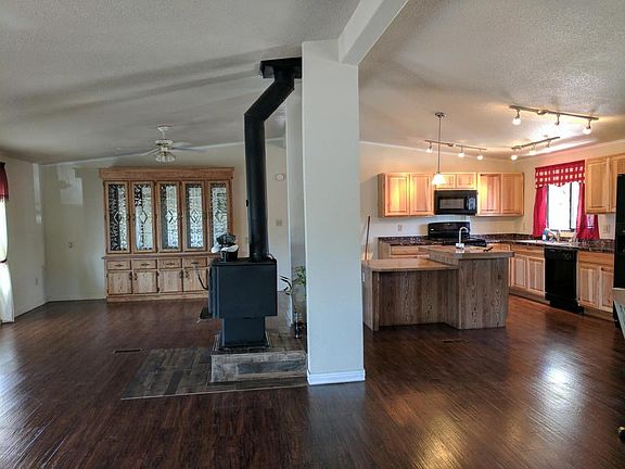 Updated, Move-in ready! 3-bedroom, 2-bath home with beautiful wood-grain laminate flooring, newer appliances, evaporative cooler, wood stove, and enclosed pet area with indoor/outdoor access. Everyone will appreciate the 24x24 insulated garage/workshop with hot/cold water, 220 volt electric, attached 16x20 carport on concrete slab, and 18x26 woodworking shop with separate entrance. Fenced perimeter, and fenced garden with electric & water drip irrigation for landscaping and apricot, plum, apple & peach trees. Fenced yard with shed, electric & water. Small horse set up with electric & water. Freestanding carport near horse set up, plus a single carport with electricity. This property has so much to offer for those looking for peaceful rural living.