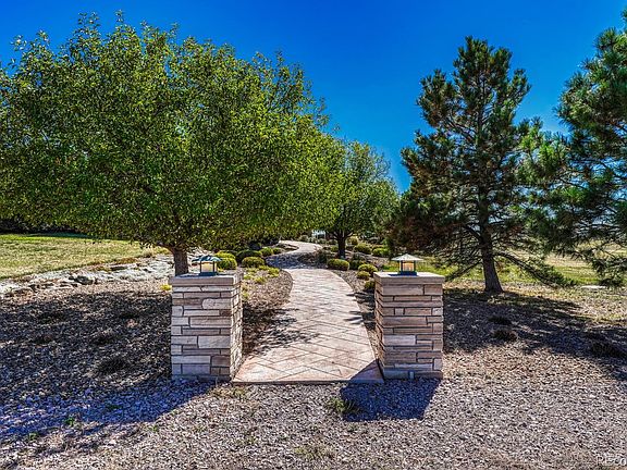 Welcome to a magnificent custom home nestled on 40 sprawling acres at 8780 Steeplechase Drive in this prestigious gated community of Franktown, CO. This elegant equestrian estate boasts 6 bedrooms and 6 bathrooms, thoughtfully designed across an expansive 5,510 finished square feet of custom living space. Immerse yourself in the sweeping mountain views that can be seen throughout the home and property. This 40 acres parcel backs to 397 acres of open space making it ideal for privacy and wildlife. The main floor primary suite is a sanctuary of comfort with a spa-like bathroom and a generous walk-in closet. The gourmet chef's kitchen and the wrap-around deck are perfect for al fresco dining and entertaining. The property also boasts a 7-stall horse barn, ideal for equestrian enthusiasts alike. Don't miss out on this incredible opportunity to own a stunning 40 acre property with incredible views and ideally located within 20 minutes of downtown Castle Rock.