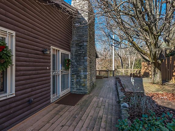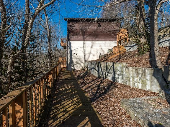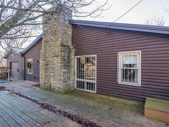 Incredible location overlooking the KY River and seconds away from both interstate and Proud Mary's restaurant, this ranch on full basement is such a cool home! Hardwood floors throughout main level complete with a wet-stacked limestone woodburning fireplace currently equipped with gas logs. There's a bedroom and full bathroom on each level for comfort and privacy. Expansive decks all the way around this wood log home tucked up among the trees for your very own adult tree-house! Sitting on a little over one and a half acres covered in trees leaves you with very little yard maintenance yet plenty of room to garden in raised stone landscaping beds. A true must see to really appreciate. Call today for your private viewing.