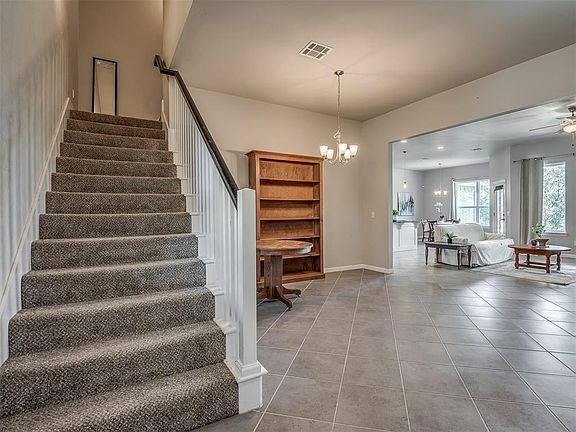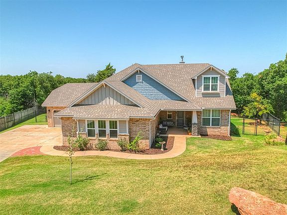 PRICE IMPROVEMENT!! Motivated Seller!! Beautiful custom home on .87 of an acre with POND access! 4 bedrooms, 3 ½ baths + a BONUS room/5th bedroom) 3 car garage. Great open layout with a split floorplan. As you enter the home you have a bedroom to the right, then you’re greeted into the formal dining space that opens up into the living. The living space features large windows and a beautiful stone fireplace. Spacious owner’s suite with patio access, walk-in closet, 2 sinks, a jetted tub, & a tiled walk-in shower with a built -in bench. The secondary bedrooms are located off the kitchen, on the opposite side of the home as the owner’s suite, and share a jack-n-jill bathroom, each room has their own vanity/sink. HUGE upstairs bonus room with a full bathroom! When entering from the garage, the laundry room is to the left, and to the right is an additional space that would make a great mud area or pocket office. The half bath is located right off the kitchen. The backyard has a stone step path through the trees down to another level of the yard where there is space for a garden or firepit! Located between Edmond and Guthrie with quick easy access to I35! **See photos for a FLOORPLAN!! -SHOP BUILDINGS ALLOWED!