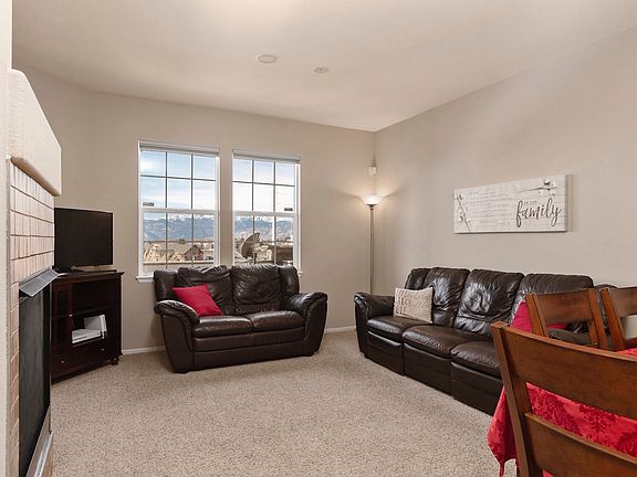 This stunning residence is move-in ready! Enjoy unobstructed Pikes Peak views from the Bright Living Room and Vaulted Master Suite, while the HOA maintains the landscaping and exterior. The immaculate Kitchen features Stainless Steel Appliances and a generous Pantry. The high ceilings keep the Main Level Living Areas bright and open around the large gas fireplace. Built-in speakers in the Living Room and Master Bedroom are just a few of the features. The workbench in the Oversized 2-car Garage stays! Tour before it sells! Garage Door and A/C were replaced in 2017. HOA repainted the buildings around 2016.