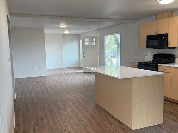Walk-in closetCovered front entrywayBlack kitchen appliancesOff street parkingKitchen island