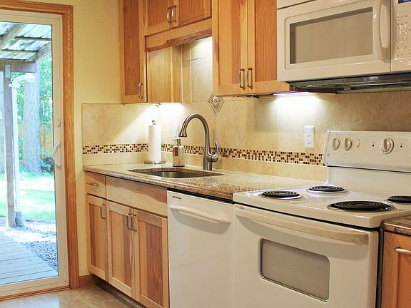 UPDATED HOME ON LOVELY .55 ACRE LOT!! Many updates! 1-lvl home. Fantastic kitchen w/ Granite cntrs. New windows. Newer Roof, wtr htr & ductless ht pump. Mature trees, seasonal crk, RVP & shop. 87820 Erdman Way. $189,900.