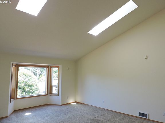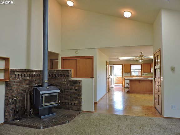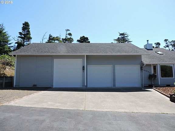 Spacious 2 bed, 2 bath home features skylights and built-ins everywhere! 4 garages, including 2 RV bays. The master suite has walk-in closet, slider to back deck, walk-in shower, and tub. Third bedroom/office has laundry hook-ups in the closet. Large living room features vaulted ceilings and a fireplace. Kitchen has breakfast bar, pantry, dining area, and door to the gorgeous sunroom. Landscaped yard with raised garden beds.