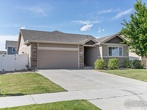 Welcome Home! Open-concept, ranch-style gem in the desirable Trails at Sheep Draw subdivision in West Greeley. Move-in ready, this home features vaulted ceilings, a convenient drop zone with a bench, 4 bedrooms and 3 baths, including a main floor primary suite with an en-suite bath and walk-in closet, and main floor laundry. Recent updates include NEW stainless steel appliances and newer carpet. Step outside to a backyard perfect for entertaining, complete with a composite deck, oversized concrete patio, and vinyl privacy fence. Located across the street from community open space, a park, and scenic trails, this home also offers quick access to Hwy 34, shopping, dining, and more! Windsor schools, and NO metro district!