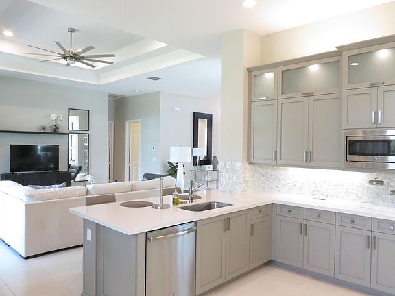 Valencia Bay, Lot 126. Builder quick delivery home with Impact glass windows and immediate occupancy. Price includes approximately $120,000 in builder upgrades, furniture and lake premium. A $28,000+ discount promotion has been included in the price. Call for a full list of upgrades. Additional closing cost incentives may apply. Incentives may change at any time. Note: 3rd bedroom is a den. HOA Fee includes lawn care and alarm monitoring.