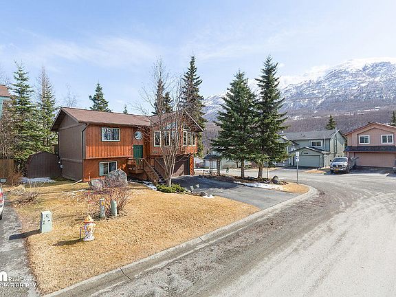 Enjoy mountain views from the big back deck of this lovingly maintained 4 bed home. Corner lot is perennially landscaped. Spacious living area with vaulted ceilings, fireplace and built-in bookshelves. Roof is 5 years old. 4*+ energy rating. New interior paint, lights and all kitchen appliances except dishwasher. Convenient JBER/Anchorage commute location.