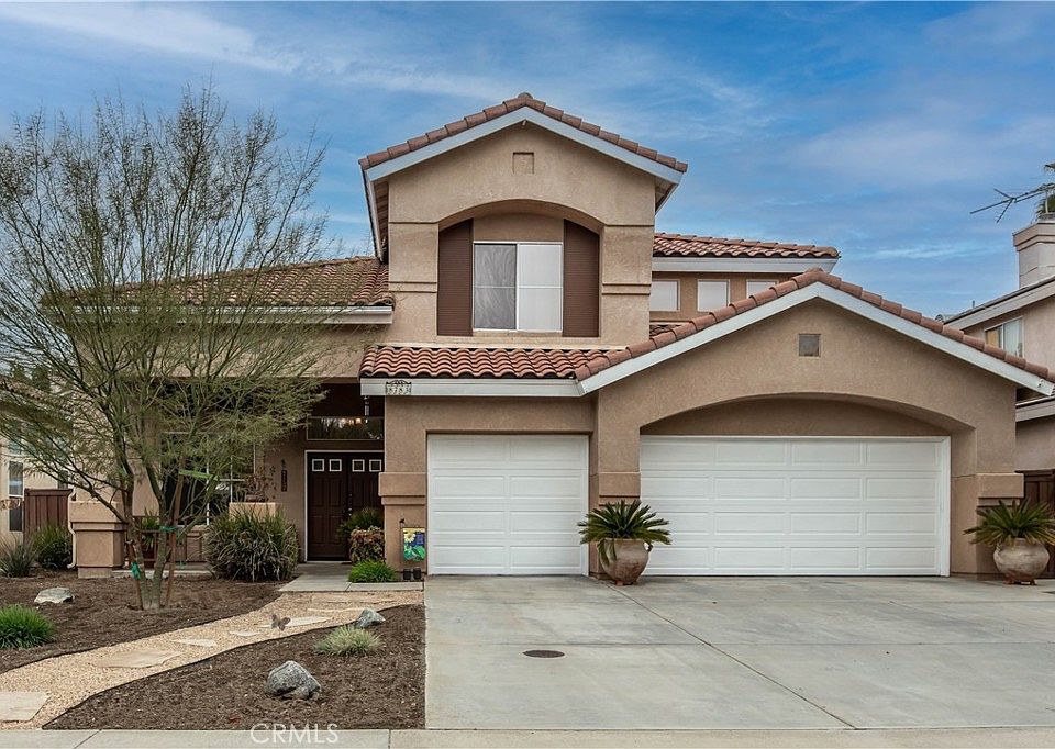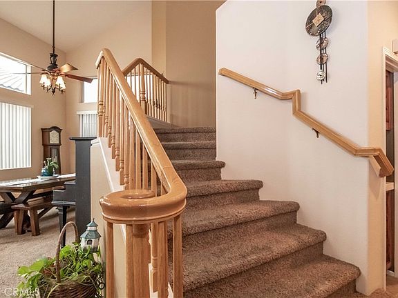 This spacious 4 bedroom home in the lovely community of Orangecrest has 3 bathrooms as well as a bonus room that could potentially be used as a 5th bedroom. One bedroom and bathroom is on the ground level which may be convenient for guests or family members who are unable to use the stairs. The home has an abundance of natural light and cathedral ceilings as well as a full kitchen containing a walk in pantry and island with plenty of space for seating. Fun built-ins include a wine service closet and coffee nook. The house has 2 air conditioning units, ceiling fans in the dining room, kitchen, family room, and all four bedrooms, and paid off solar. The low maintenance backyard has a pool and spa as well as a covered patio with fan, lighting, and a TV. Finally, in addition to all these features, the home is in walking distance to Orange Terrace Park which is equipped with Fields, Community Center, Library, Playgrounds, Courts, etc., and the community also boasts top rated schools, including Martin Luther King High, with no HOA and low taxes.