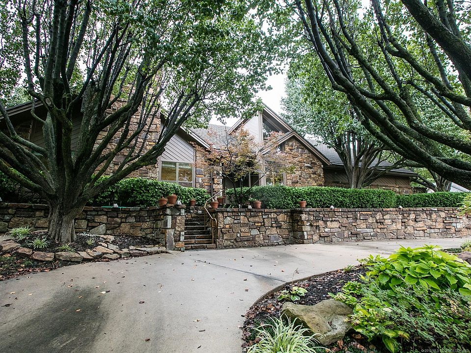 Enjoy Resort style retreat in South Tulsa. Jenks Schools. Lagoon pool, waterfalls, cave, koi ponds, spa, outdoor kitchen, 1/2 bath & FP, Gorgeous home. Only 1 rm up w/bath. Flexible plan. Huge 2 car gar + 4 car gar/workshop w/office & 1/2 bath, Must see!