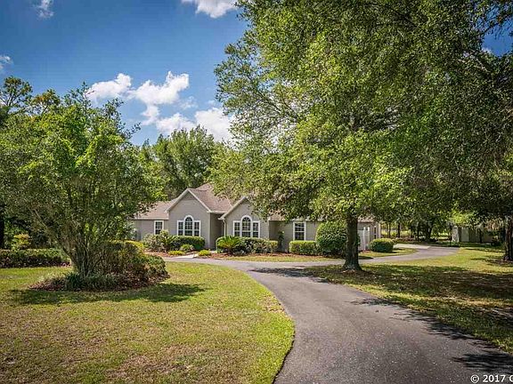 You have found it! Beautiful former builders parade home on 1.32 acres in SW Gainesville convenient to butler plaza, UF, Celebration Pointe, Shands/VA hospitals and more! This home features high ceilings, crown molding, upgraded fixtures, central vacuum and more! The open floor plan offers a gourmet kitchen with bar, formal dining room, large eat in kitchen area, family room with built ins, new carpet, and french doors opening to private back yard. Master bedroom with private access to lanai, luxury bath with shower and tub and walk-in closet. Guest rooms each have their own private bath, a shared desk/computer area and an oversized utility room with extra storage perfect for large families. 3 car garage with full floored attic space for storage, plus a separate detached garage/workshop. Outside you can spread out and enjoy the wooded yard with large circle drive, extra parking, new exterior paint and room to roam! Call today!