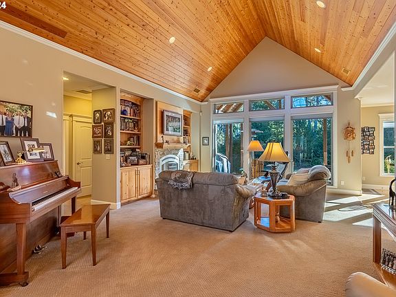 - Features: Bookcases, Builtin Features, Fireplace, Sliding Doors, Vaulted Ceiling