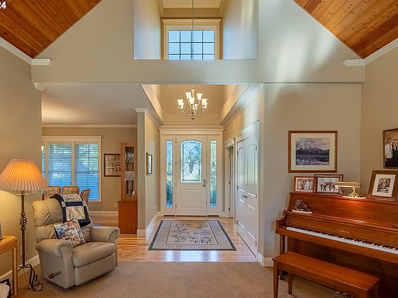 One of a kind Carter Bros. built custom home in The Reserve. Immaculately maintained inside & out. Pacific NW design by Mascord and Assoc. features serene views of forest and great privacy in this quiet cul-de-sac. Living room features vaulted wood tongue and groove ceilings and gas fireplace + hidden TV "art cabinet". Chef's kitchen with custom WG Peterson Cabinetry and built-in stainless steel gas appliances. Wood-filled office off of entry with built-in bookscases and desk. Hickory hardwood flooring. Heat pump. 3 car side load garage. Covered back deck + beautiful landscaping all around with irrigation. .43 acre lot with deeded RV parking pad with all hook-ups.