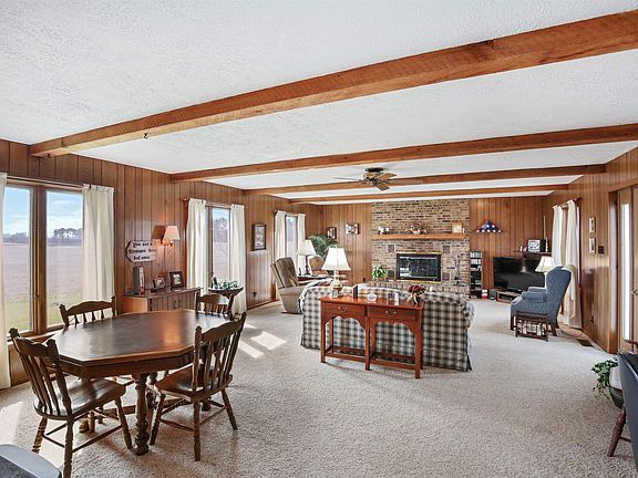 Ready to move to the country? Enjoy country living on 3 acres in Southern LaPorte County. Relax on the covered front porch overlooking the farm fields where the sun rises. Property is well maintained and has had many updates including furnace, roof, well, flooring, plumbing, electrical and much more. Large living room with masonry gas fireplace opens to a spacious dining room suitable for entertaining. Main floor offers primary bedroom and laundry room. Upper level offers 2 bedrooms and plenty of accessible floored attic storage. Nice dry basement. 30X30 oversized 2 car garage with workshop area. 10X12 storage/play shed with concrete floor and electric. 46X64 Barn with electric, partial stalls, hay feeder and concrete pad area. Original grain bin to use your imagination. Make your appointment today. One year home warranty included!