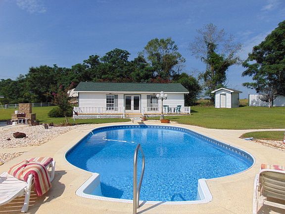 Nice horse farm, 4 stall horse barn, lots grass, fenced and cross fenced, RV barn with full hookups, 1,000 sq. ft. guest house,roofs 2 yr old, yard has sprinkler system, alarm system, 2 real wood burning fireplaces, 1/4 mile paved rd. frontage,2 car detached garage, porch wraps main house, gazebo, 1 acre stocked fish pond, ****sq. Footage shown is combined for main house and guest house, possibly financing thru Alabama Ag. Credit to qualified buyer,2 water wells,