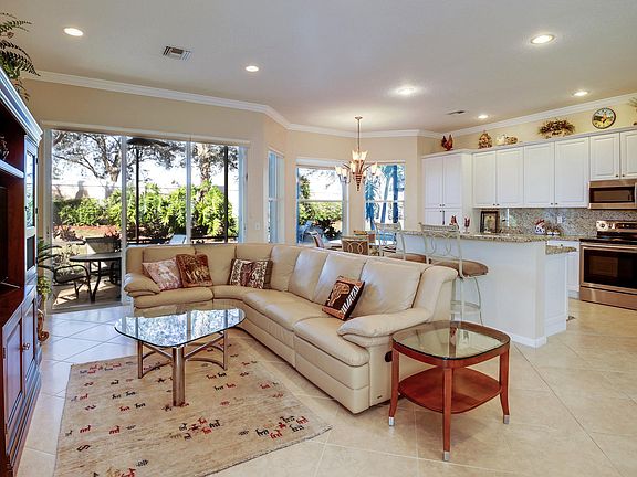 If you want an immaculate, move-in ready house, look no further. This lovely home is a bright, true 3 bedroom with an open floor plan. Pride of ownership is evident. There are upgrades and updating throughout e.g. new a/c in 2019, newer appliances, tile laid on the diagonal, ceiling moldings, silhouette shades, custom closets, and accordion hurricane shutters. Enjoy the solitude and your privacy while relaxing on the screened patio. The kitchen has granite counters, full backsplash, extended snack bar, and pull-out shelves. The bathrooms are also updated with frameless shower doors, and shower tile to the ceiling. Be part of the wonderful Valencia Shores lifestyle,. Enjoy all the social and athletic amenities.